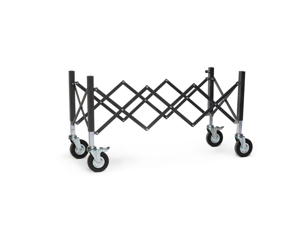 Čierny lakovaný hliníkový vozík s kolieskami s priemerom Ø 125 mm, z ktorých dve majú brzdy a rukoväť.