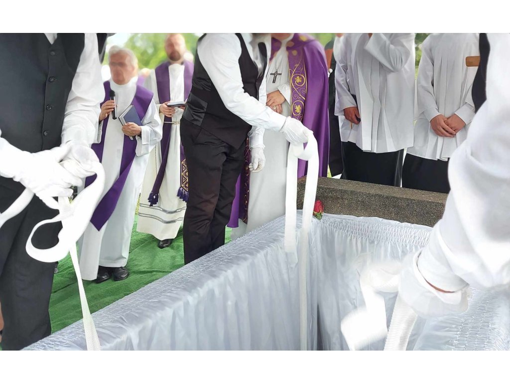 ednorazové popruhy na spúšťanie truhly do hrobu