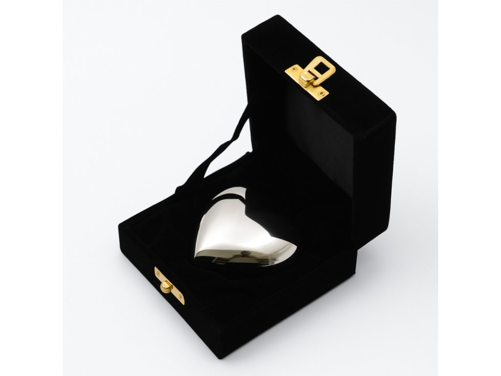 Mini urna mosadzná, srdiečko strieborné, vysoký lesk