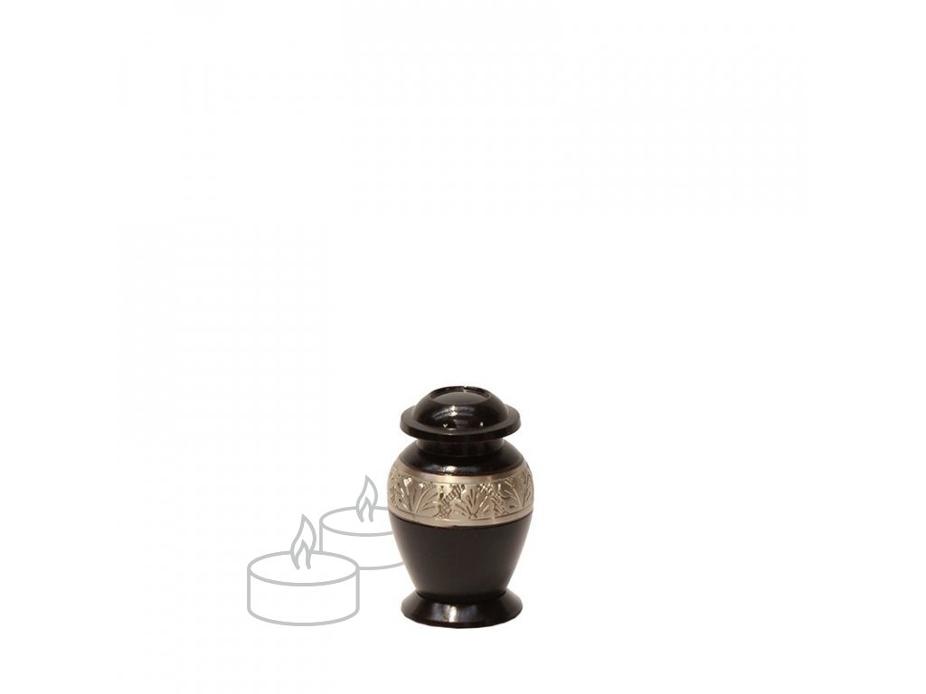 Mosadzná mini urna - relikviár na umiestnenie malého množstva popola.
