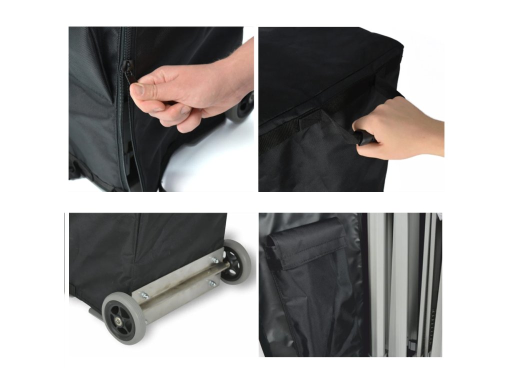 - Zabudované kolieska a madlo výrazne uľahčujú prepravu stanu