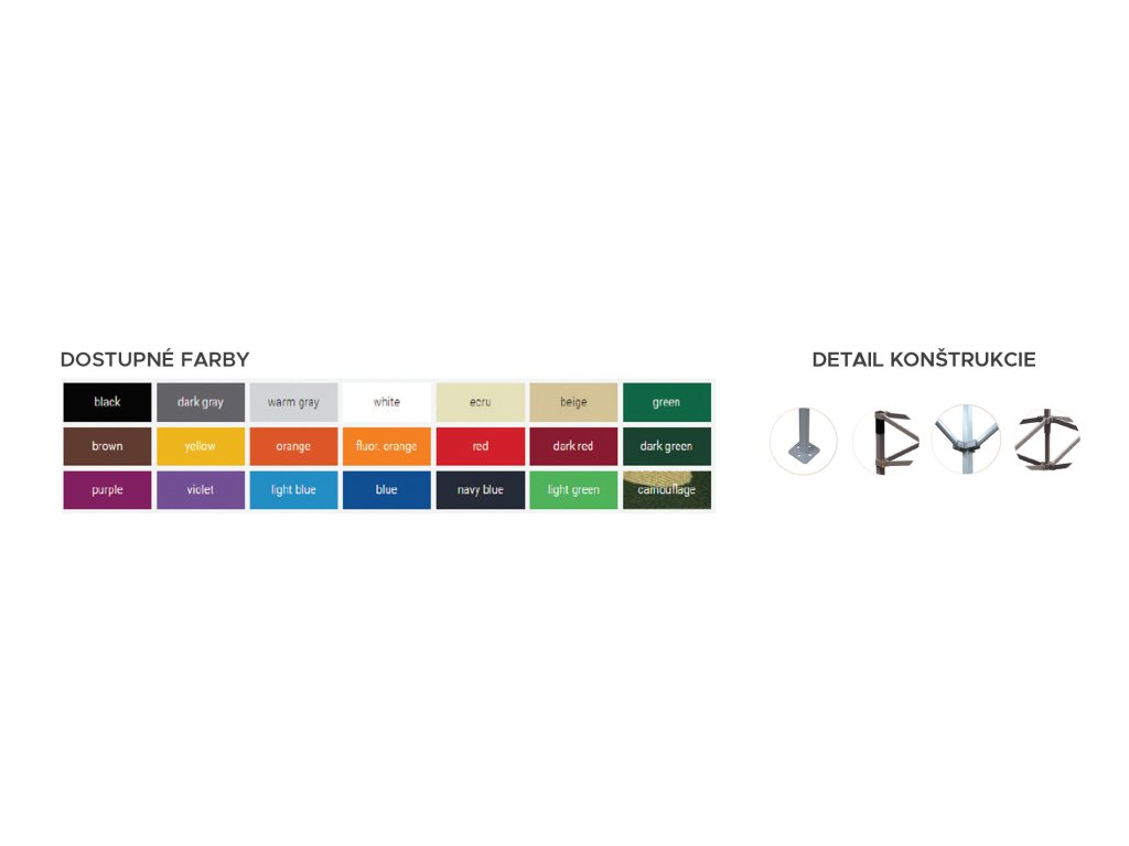 - možnosť objednania bočných stien a zadnej steny (upevnenie ku konštrukcii pomocou pásov zo suchých zipsov)