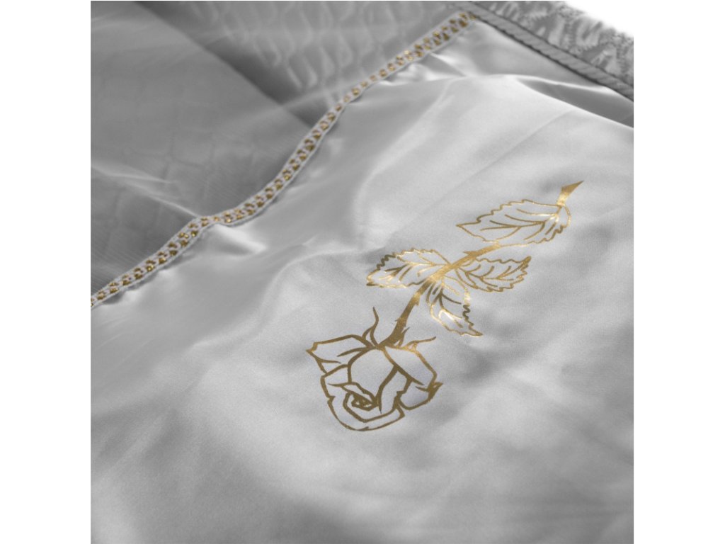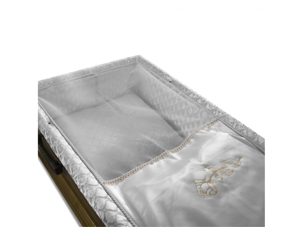 Saténová prikrývka na telo zosnulého s tylovým okienkom - tj. celú 1/3 prikrývky tvorí tyl (nejde o malé okienko)