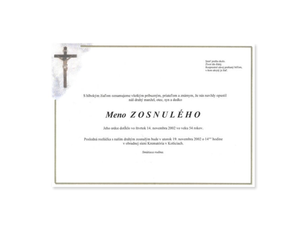 Smútočné oznámenie - parte - VZOR 7