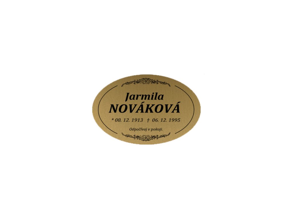 Tabuľka hliníková, oválna malá, s potlačou - 10 x 6,5 cm