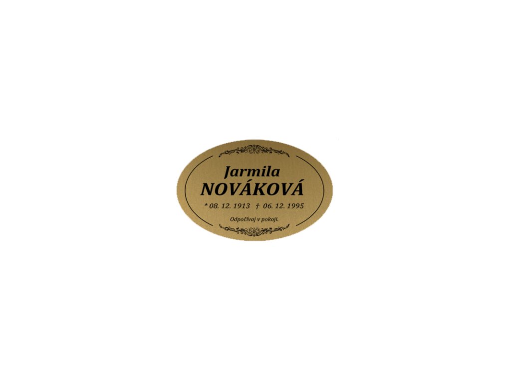 Hliníková tabuľka s menom a dátumami. Možné na tabuľku pridať obrázok - všetky údaje je potrebné uviesť do poznámky.