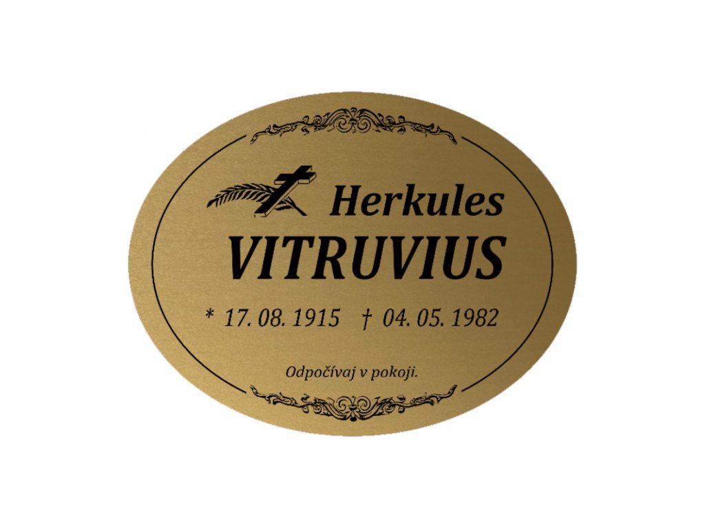 Hliníková tabuľka s menom a dátumami. Možné na tabuľku pridať obrázok - všetky údaje je potrebné uviesť do poznámky.