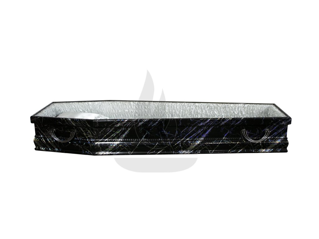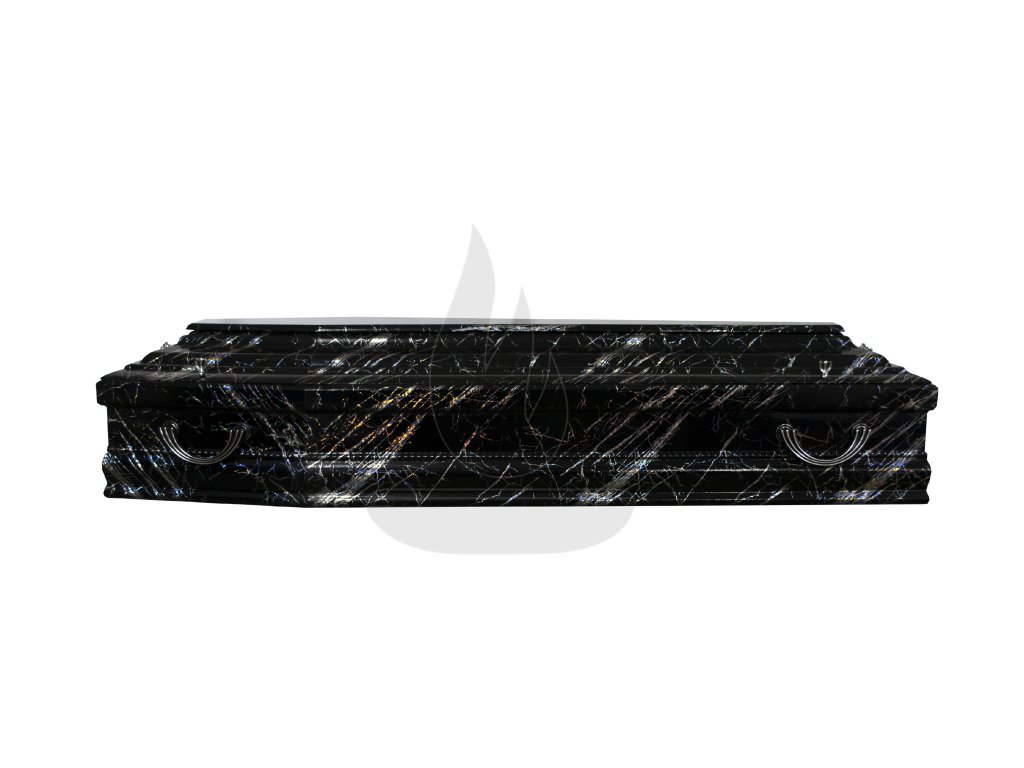 TYP: Truhla TF 1 OPÁL - Čierna truhla s kamenným vzhľadom, kresba s opalizujúcimi odleskami