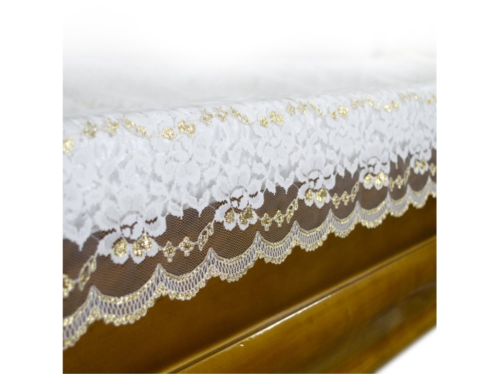 Tylová prikrývka bez výšivky, s bielo-zlatou krajkou 12 cm