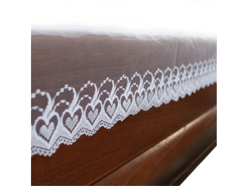 Tylová prikrývka s výšivkou a bielou srdiečkovou krajkou 12 cm