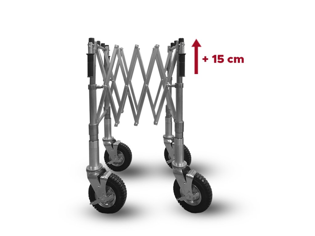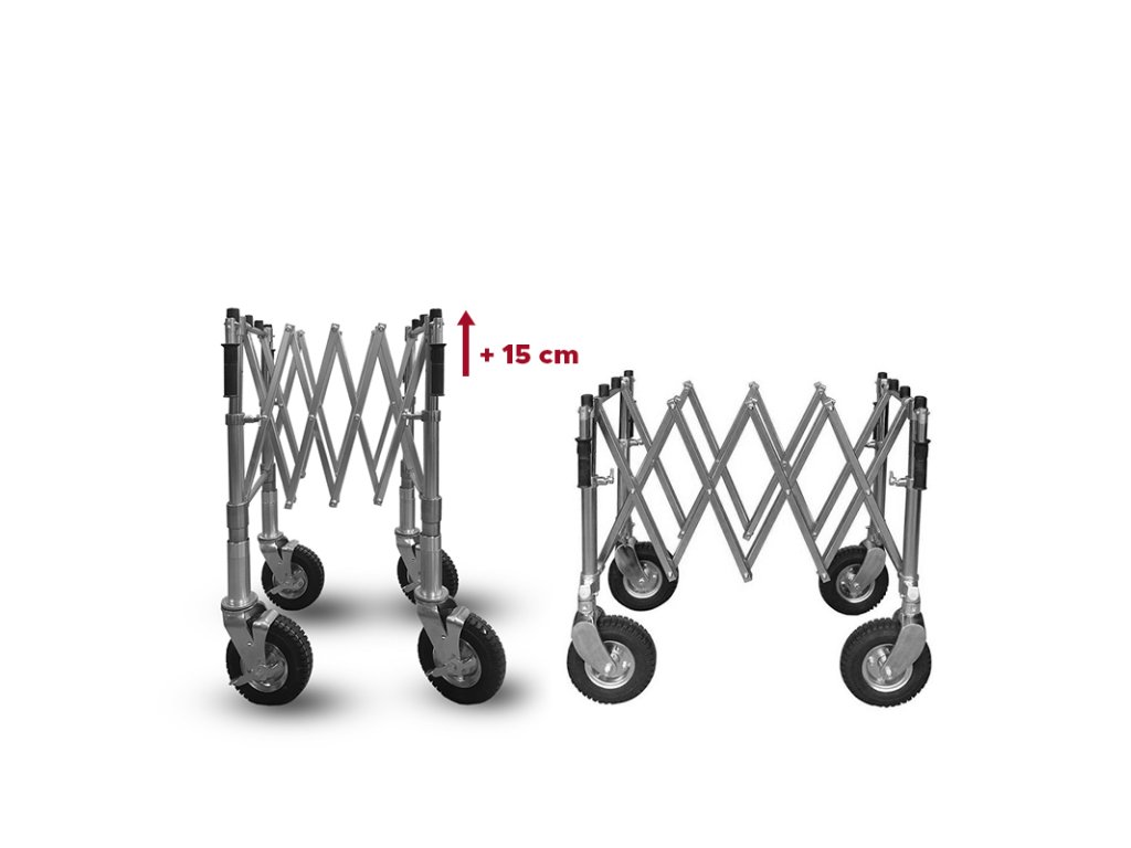 Rozkladací nožnicový (harmonikový) vozík so zvýšením o 15 cm.
