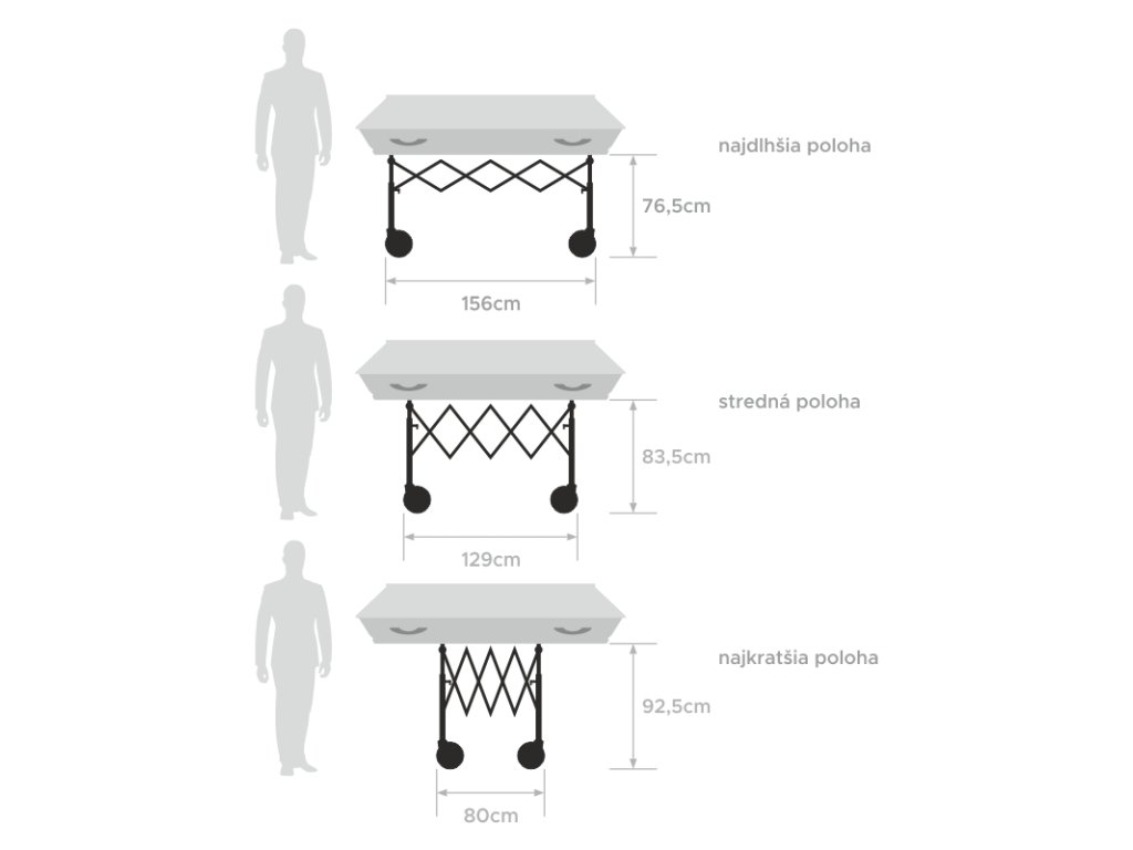 V krátkej polohe (na obr.) vhodný aj ako katafalk pre obrad pri urne.