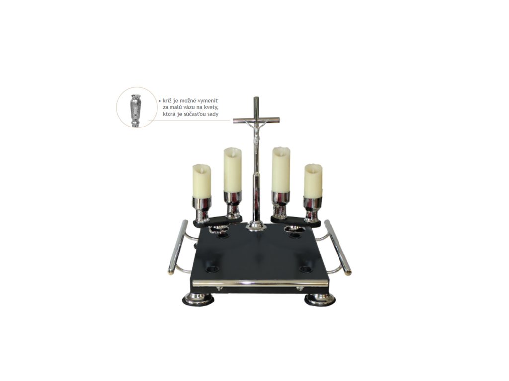 Základňa s kovovými hladkými držadlami, LED sviečkami, s krížikom/vázičkou